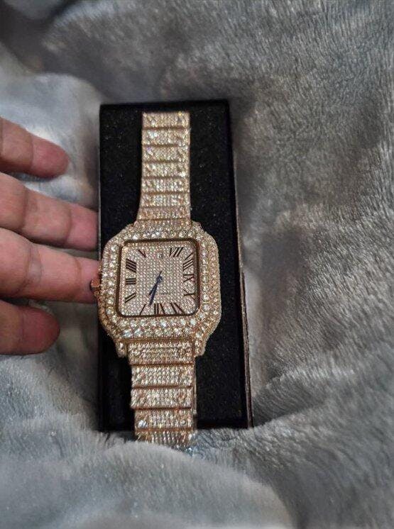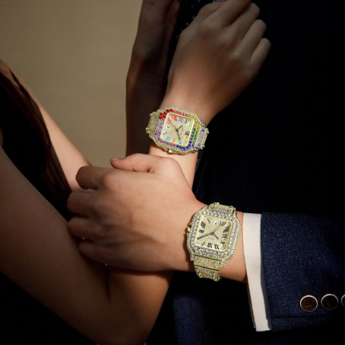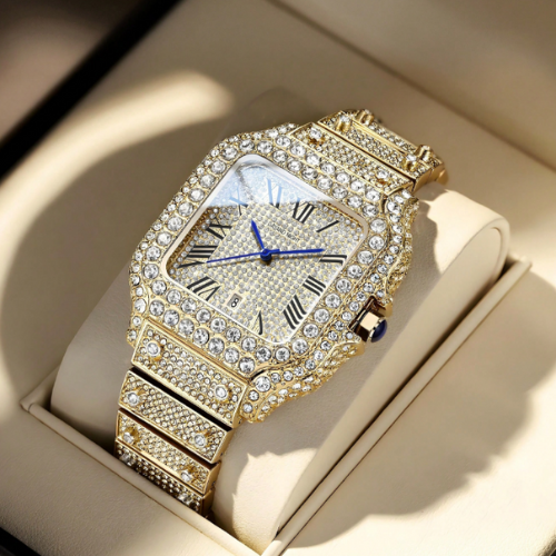 Elegant klocka med romersk urtavla är skapad för dig som uppskattar klassisk design och raffinerad lyx. Den gnistrande boetten är infattad med skimrande stenar som fångar ljuset i varje vinkel, medan de djupblå visarna rör sig med lugn precision över den eleganta romerska urtavlan. Armbandet är noggrant polerat och vilar bekvämt mot handleden, en perfekt kombination av elegans, styrka och komfort.