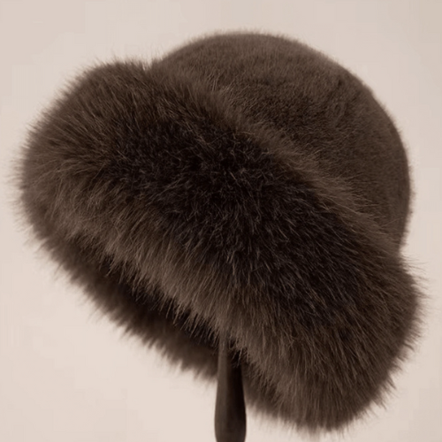 En exklusiv vintermössa med mjuk fuzzy struktur och generöst formad silhuett som ger ett sofistikerat och välbalanserat uttryck. Den fluffiga ytan skapar en känsla av värme och ombonad komfort samtidigt som designen behåller ett elegant helhetsintryck.