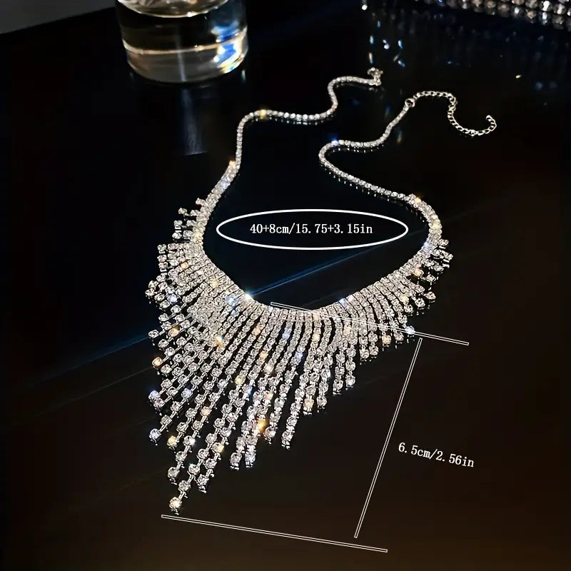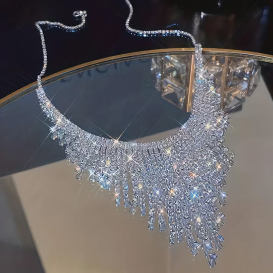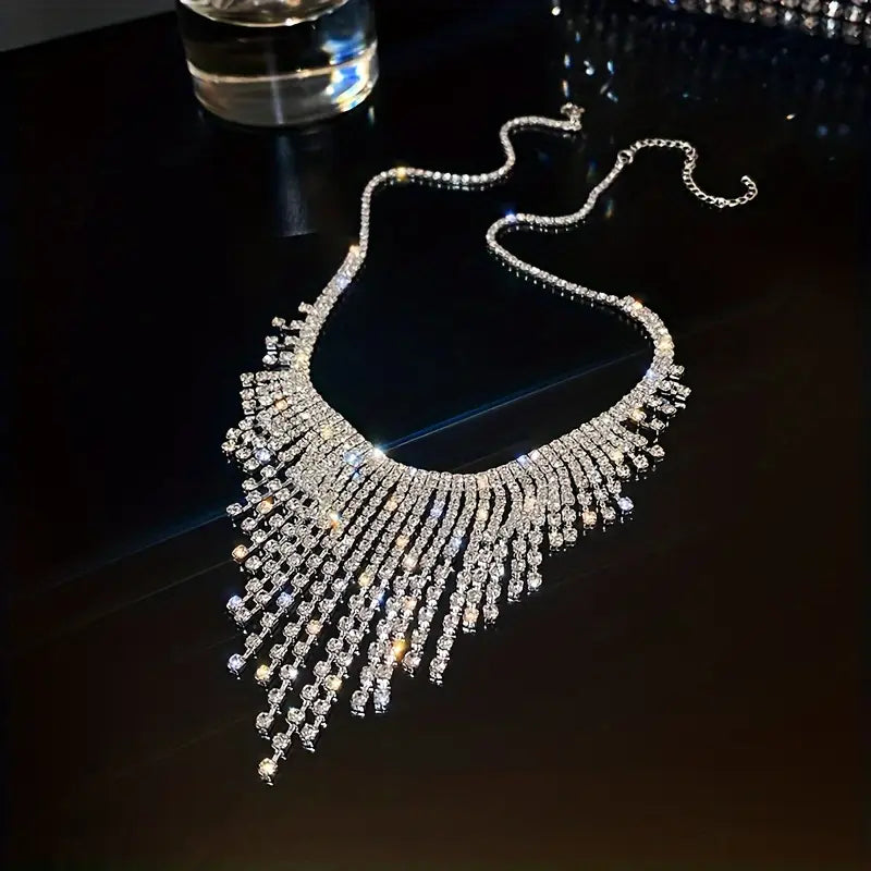 Ett elegant halsband med gnistrande strass och pärlemor. Halsbandet är tillverkat i koppar och pläterat med vit K för en sofistikerad finish.