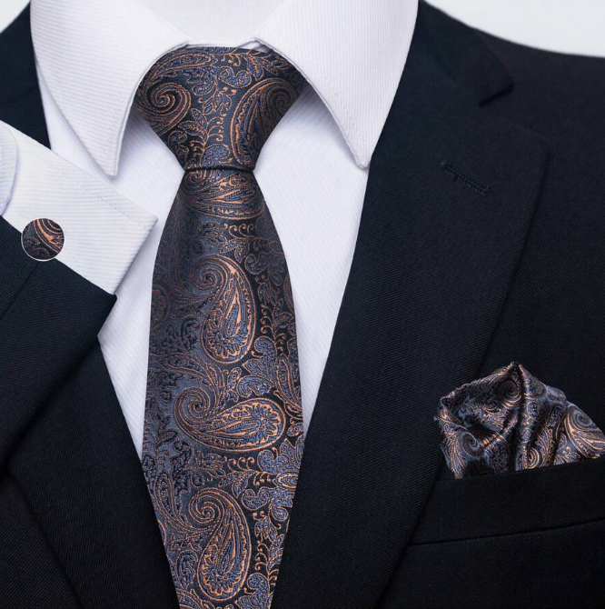 Ett exklusivt set för män som uppskattar diskret elegans och små detaljer som gör skillnad. Slipsen och näsduken kompletteras av manschettknappar som levereras i en lyxig present ask. Allt samlat i ett set som både ser elegant ut och känns genomtänkt.